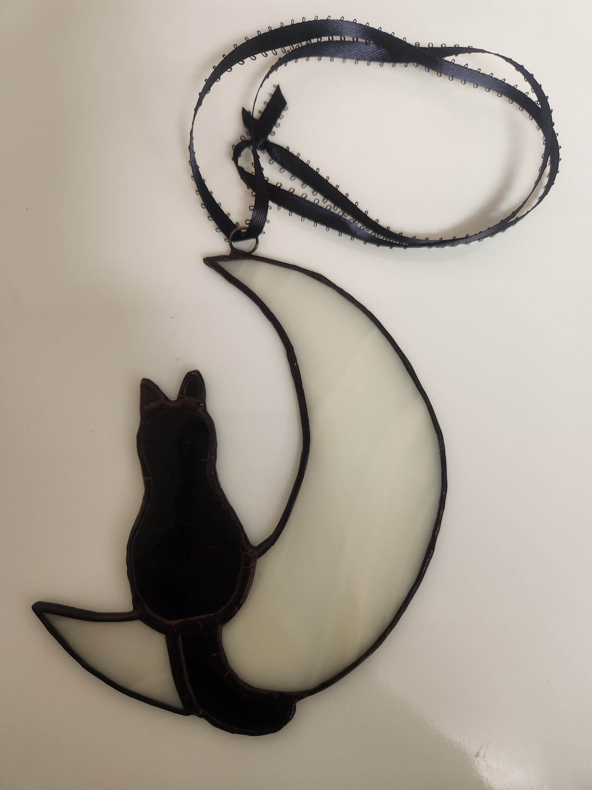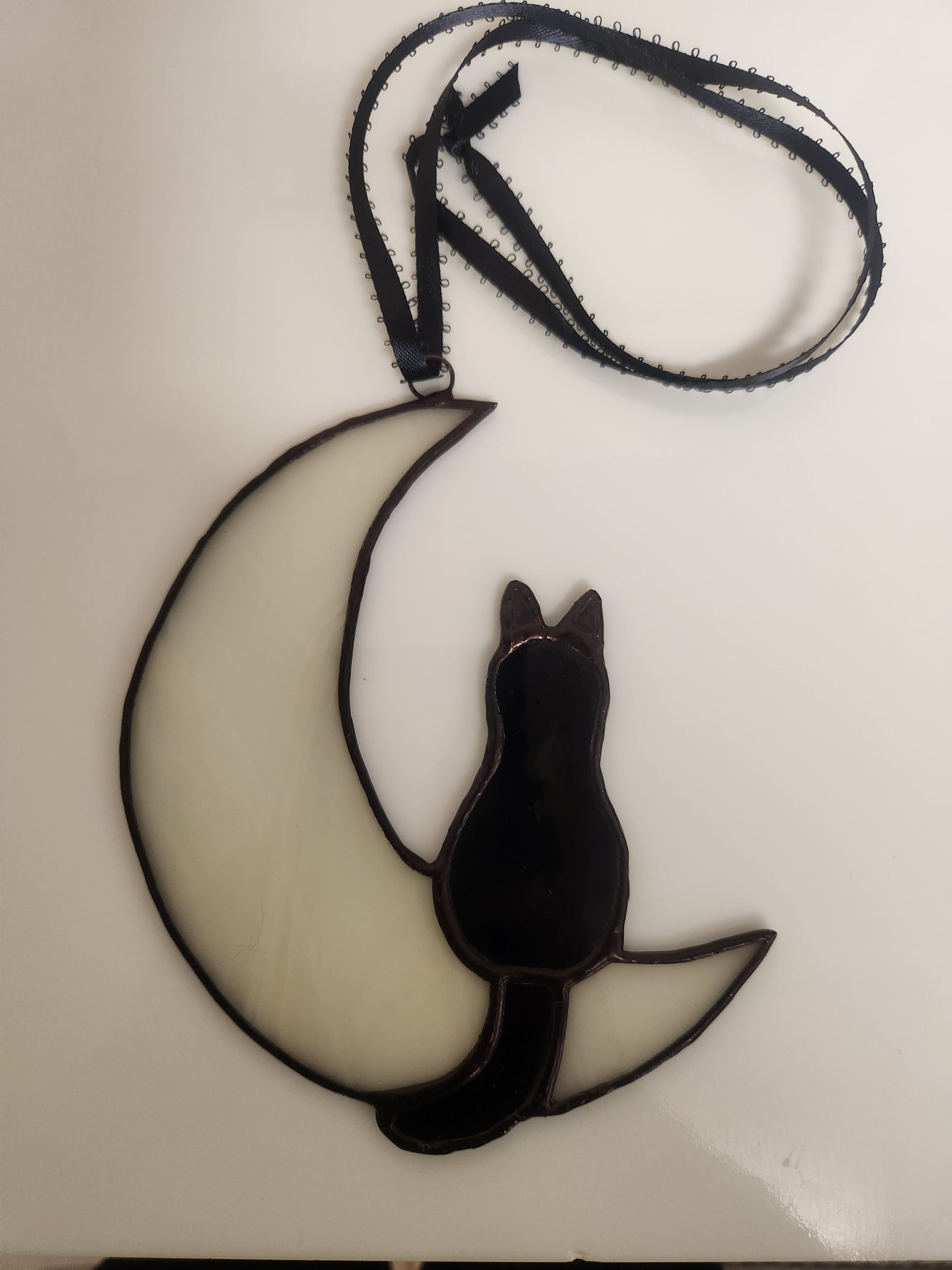 Decorative, Cat sitting on Moon, Halloween, Stained Glass, Hand Crafted, Unique